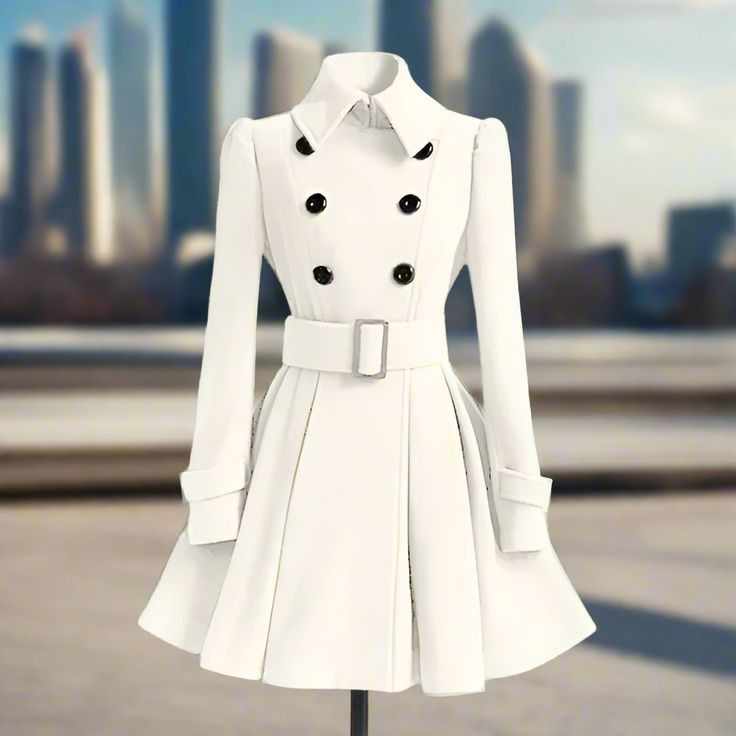Uska lamba aur patla shakal ek lambi, kaali trench coat mein lapeta hua hai, jisme sharp lapels aur high collar hai jo uski gardan ko chhupata hai. Coat thandi hawa mein halki si lehra rahi hai, aur neeche se uske knee-high kaale leather ke boots dikhai dete hain. Uske baal, jo raat ke andhere ki tarah kaale hain, ek tight bun mein bandhe hain, jo uske teekhe aur flawless chehre ko aur zyada prominent banate hain. Uska chehra bilkul safed aur pale hai, jo chandni ke neeche ek ajeeb si chamak de raha hai. Uski aankhein, jo thandi aur gheri si gray rang ki hain, aise lagti hain jaise kisi ke dil ke raaz tak dekh sakti ho.